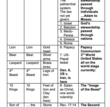 Finally, direct revelations are given in chapters 9 through 12. The stories and visions are more interesting, more exciting. Cartoons of beasts will draw an interested crowd, but a reading of Daniel 11 would likely clear out the crowd. It is “boring.” The words there are for the mature who do not need a story line or a dream for motivation to search out meaning. We will not examine these direct revelations in this book.