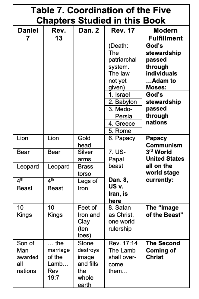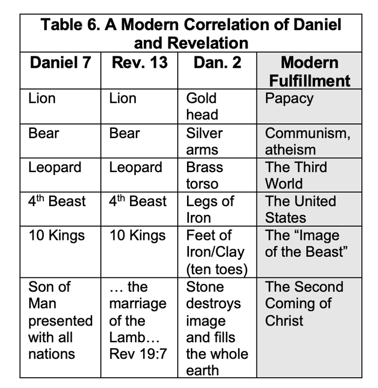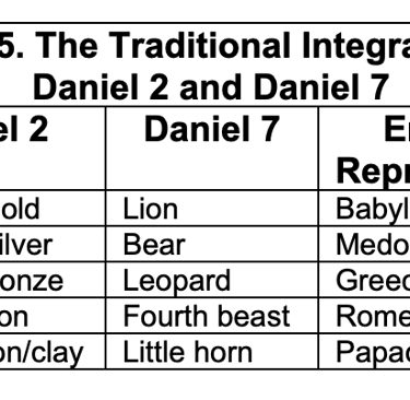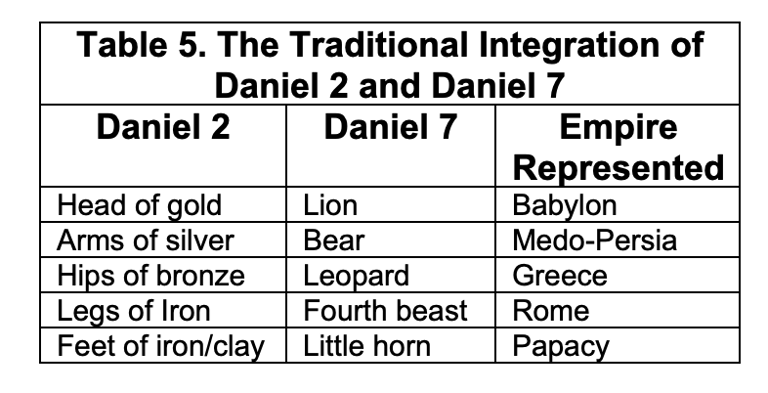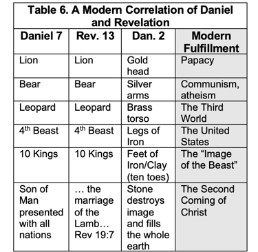 Consider the comparison of Daniel 2 to Daniel 7 and Revelation 13 in Table 6 which is somewhere on this webpage...